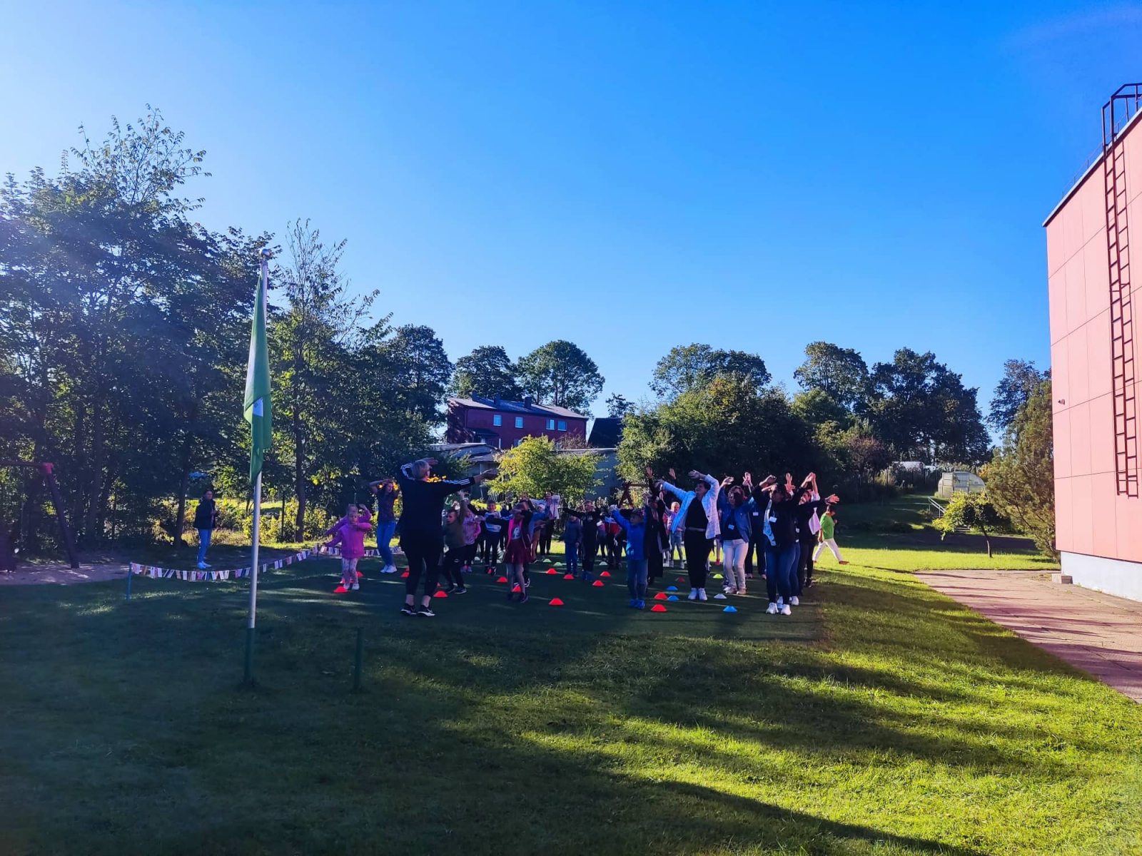 Early morning of the second project day started with active exercises by the teacher A. Norvaišienė.
